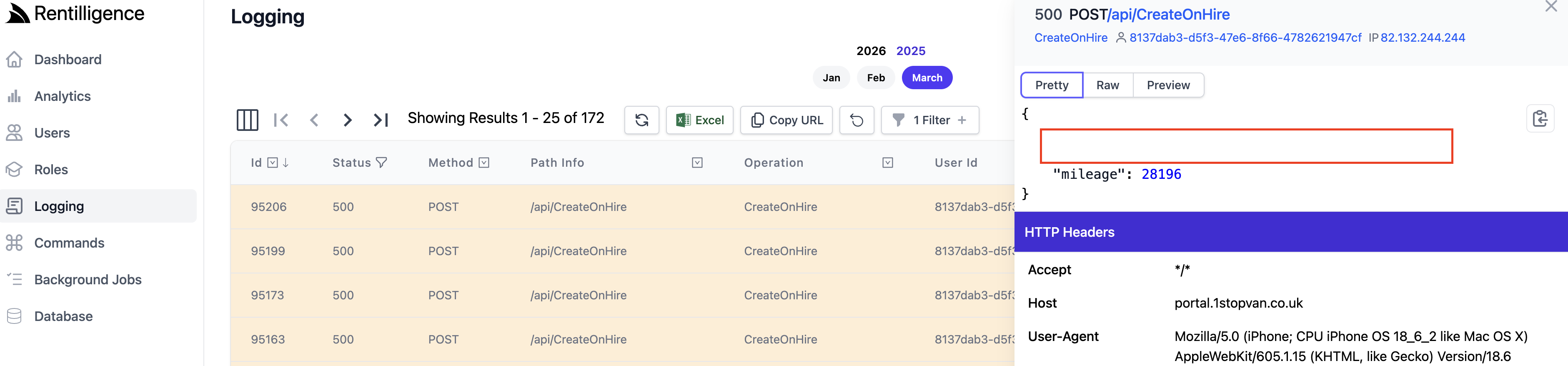 Logging persistence is handled by the Request Logger. What Request Logger do you have configured?