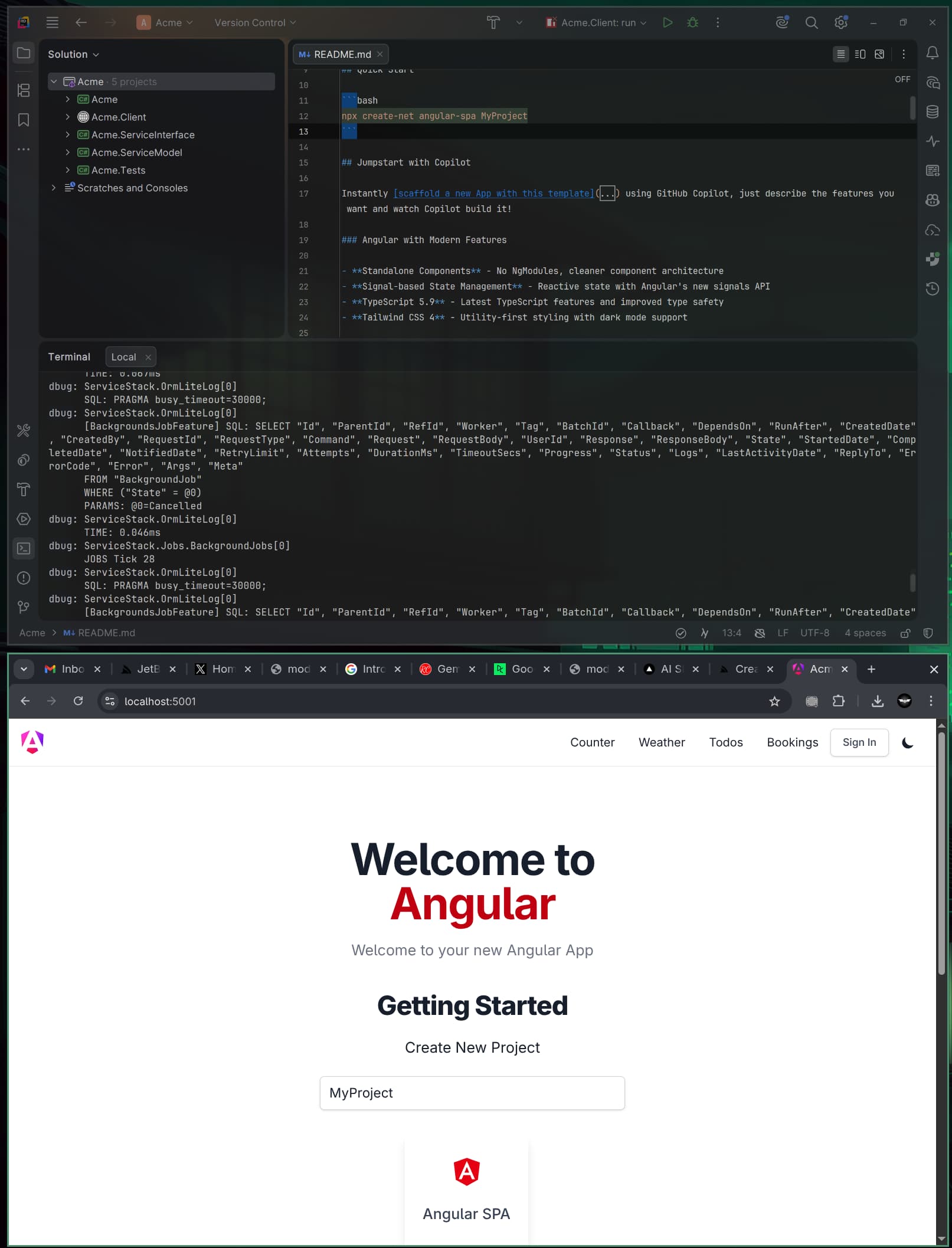 I decided to take a look at the current Angular SPA template to see how it all fits together. I’ve created a new project and ran it inside JetBrains Rider.