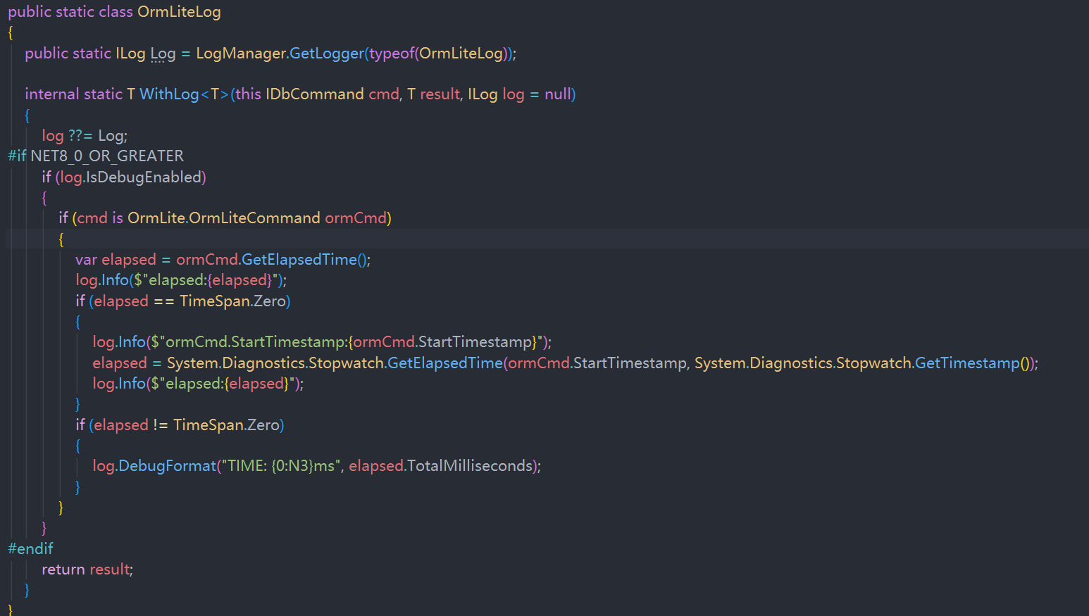 Yeah not sure, it’s just the difference between the end - start of each command it executes in OrmLiteCommand.cs.